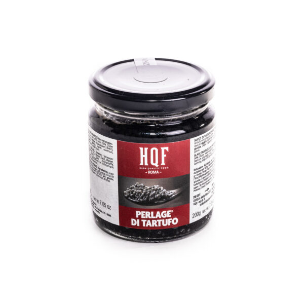 HQF selects the Black Truffle Perlage, an excellent product obtained from prized black truffle juice.It can be used like caviar. Excellent to be enjoyed on croutons and blinis or to garnish pasta, risotto, vegetable soups, cheeses, foie gras, fish and meat carpaccio, cheese fondues, eggs, potatoes and all dishes that go well with truffles. Store in the refrigerator at temperatures between +2°C / +8°C. Once opened, consume within 30 days.